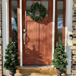 Each decoration piece is already pre-decorated with pine cones and berries. It also comes pre-lit with outdoor clear incandescent lights.