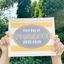 Download these free printable First Day of School 2025 signs! There are signs for each grade from Preschool to 12th Grade, as well as a sign that simply says “First Day of School.”