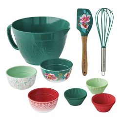 This set includes a batter bowl, prep bowls, whisk, and spatula to help you mix your ingredients while the 12 muffin cups offer a base for baking.