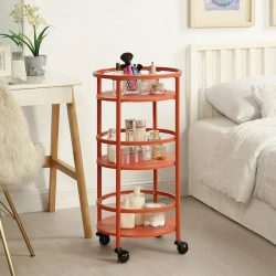 Walmart has this Mainstays 3-Tier Rolling Round Storage Cart as low as $9.98! Available in three fun colors, with red and blue offered at the lowest price.