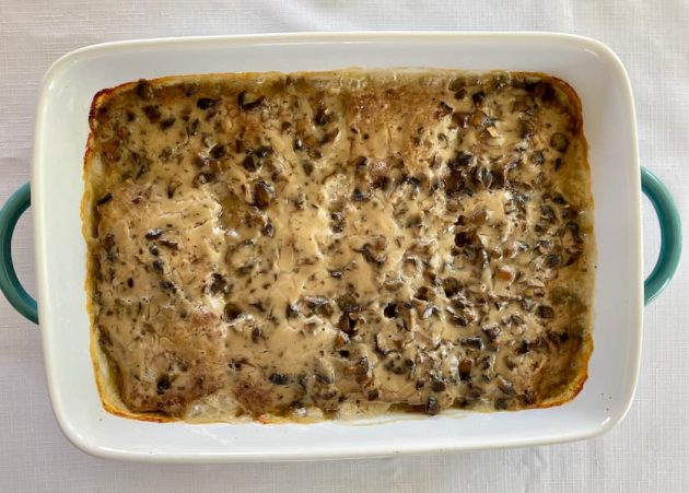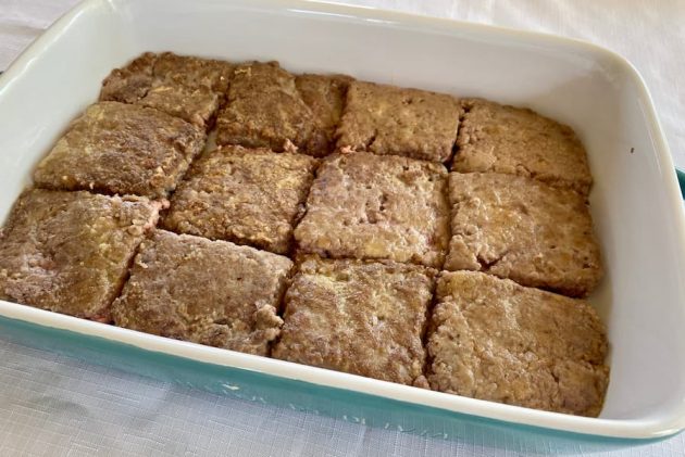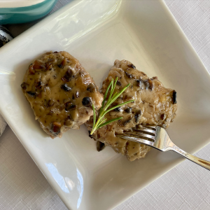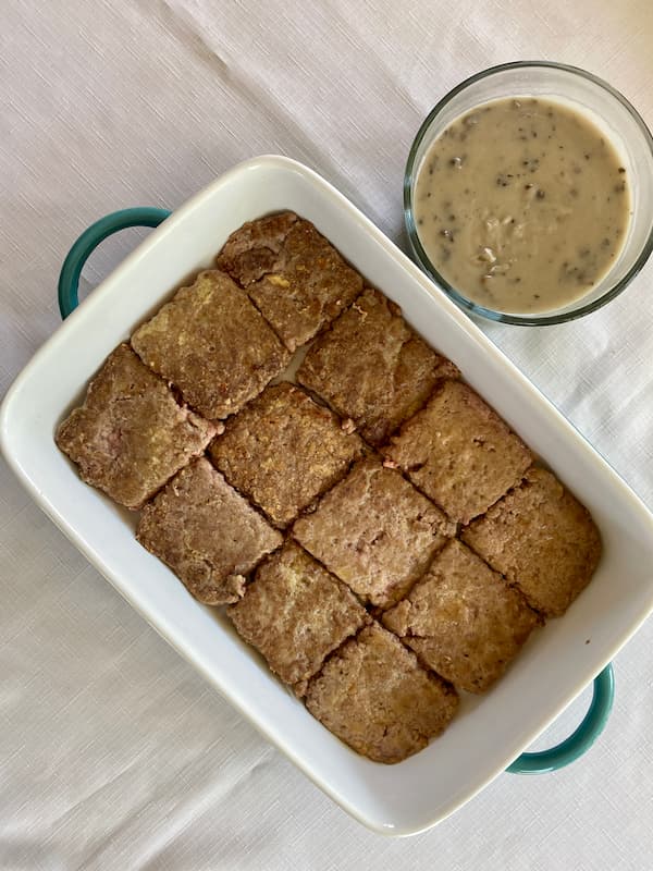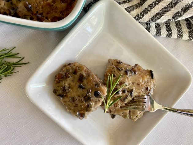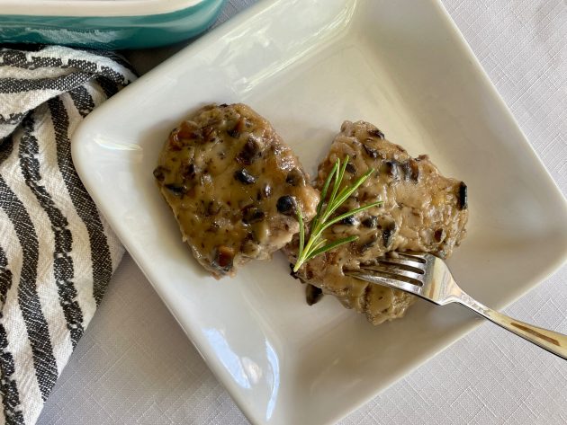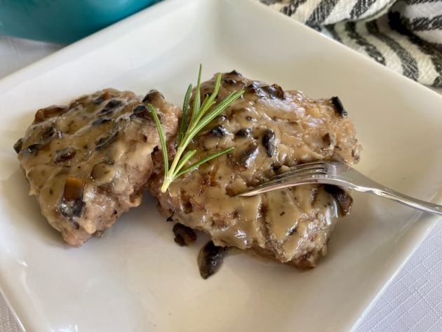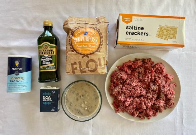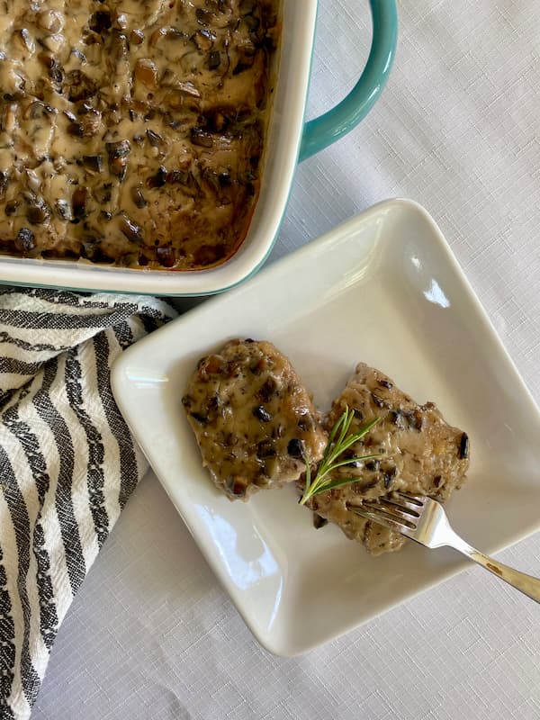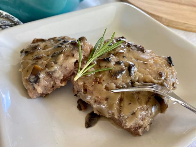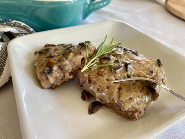It’s an easy recipe that uses ground beef instead of a pricier piece of meat (like an actual steak). The ground beef is mixed with several ingredients, similar to meatloaf, except before baking it in the oven, you fry smaller squares of the mixture in a pan (or you could do it on a grill or griddle) then cover the meat in a creamy gravy before baking it fully in the oven.