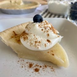 So I tried out the recipe, and color me shocked when this humble method turned out one of the creamiest, most luscious custard pies I’d ever tried! In my opinion, it rivals any custard or cream pie I’ve tasted. And the maple flavoring makes it especially cozy for wintertime.